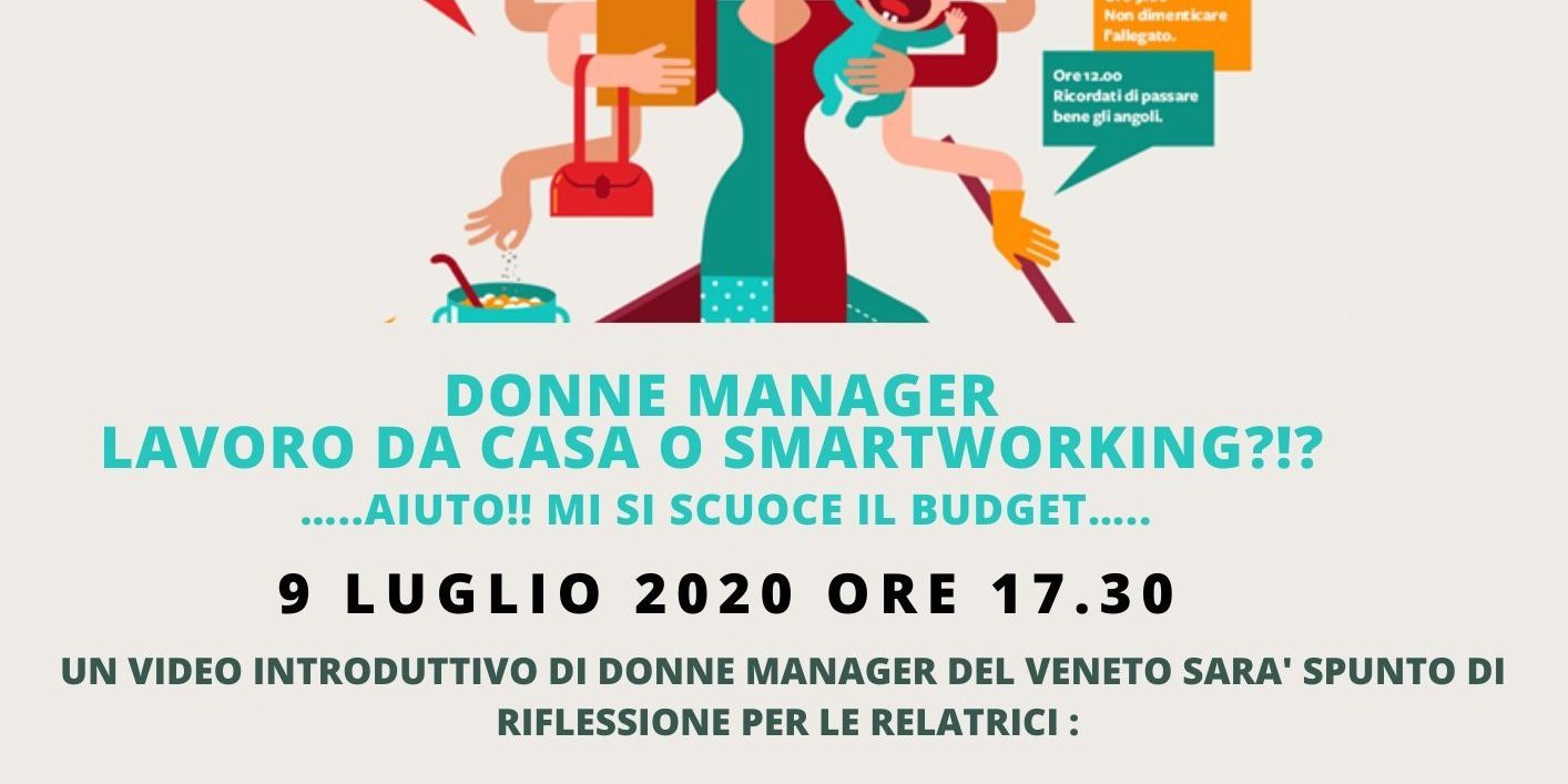 Un video, realizzato con il contributo di 10 Manager socie delle diverse territoriali del Veneto che racconteranno le loro esperienze sul tema, sarà lo spunto per analisi e commenti da parte di tre esperte che risponderanno al termine della tavola rotonda alle domande in diretta, via chat, da parte del pubblico online.